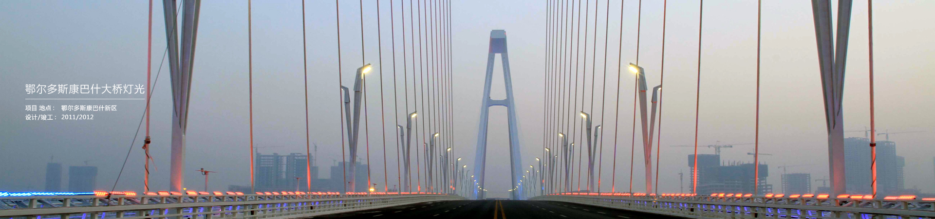 鄂爾多斯康巴什大橋(烏蘭木倫河4號橋)位于康巴什新區(qū)烏蘭木倫河下段河道,橋梁全長1005米,主橋長800米,主跨為450米的雙塔雙索斜拉橋,橋?qū)?7米,塔高129米,主跨和主塔采用鋼結(jié)構(gòu),邊跨和引橋采用混凝土箱梁結(jié)構(gòu),共有斜拉索68對,屬于國內(nèi)大型斜拉橋。為更好的表現(xiàn)景觀效果,我們?yōu)榭蛋褪泊髽蛱貏e設(shè)計了一款大型景觀燈具,馬燈。